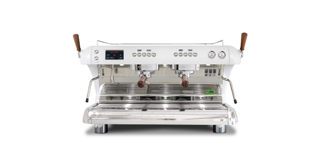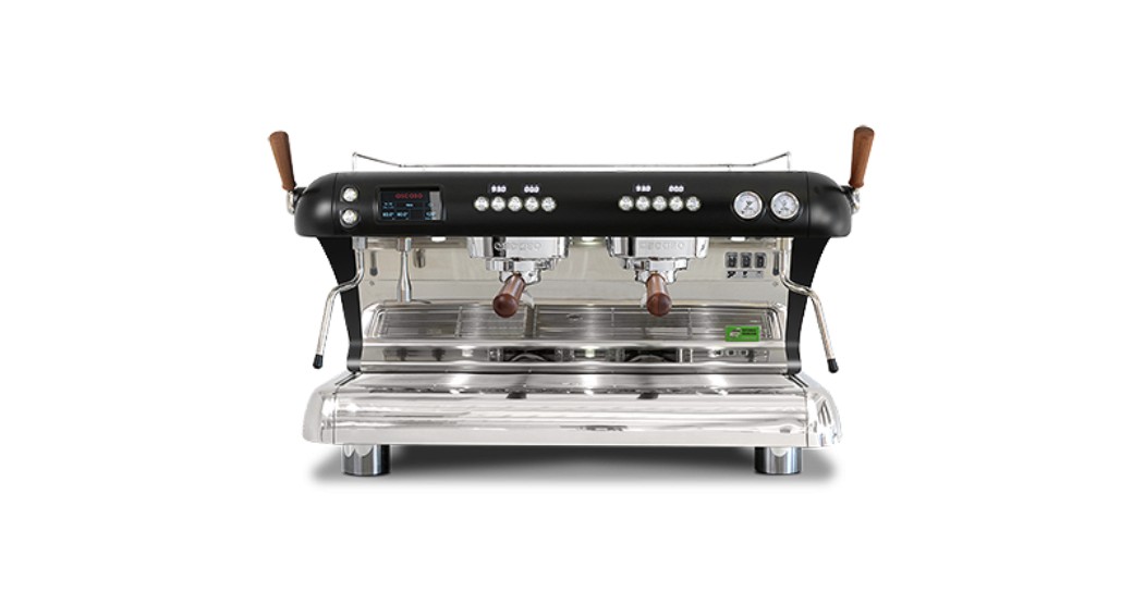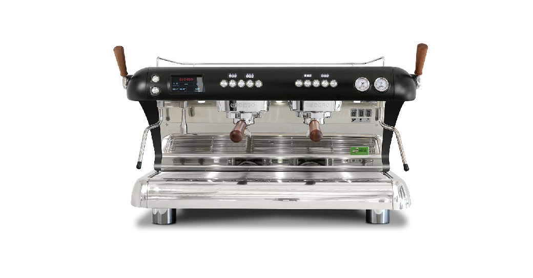 External timer for each group, general touch screen display, and stainless steel double-walled steam wand enhance usability and performance.